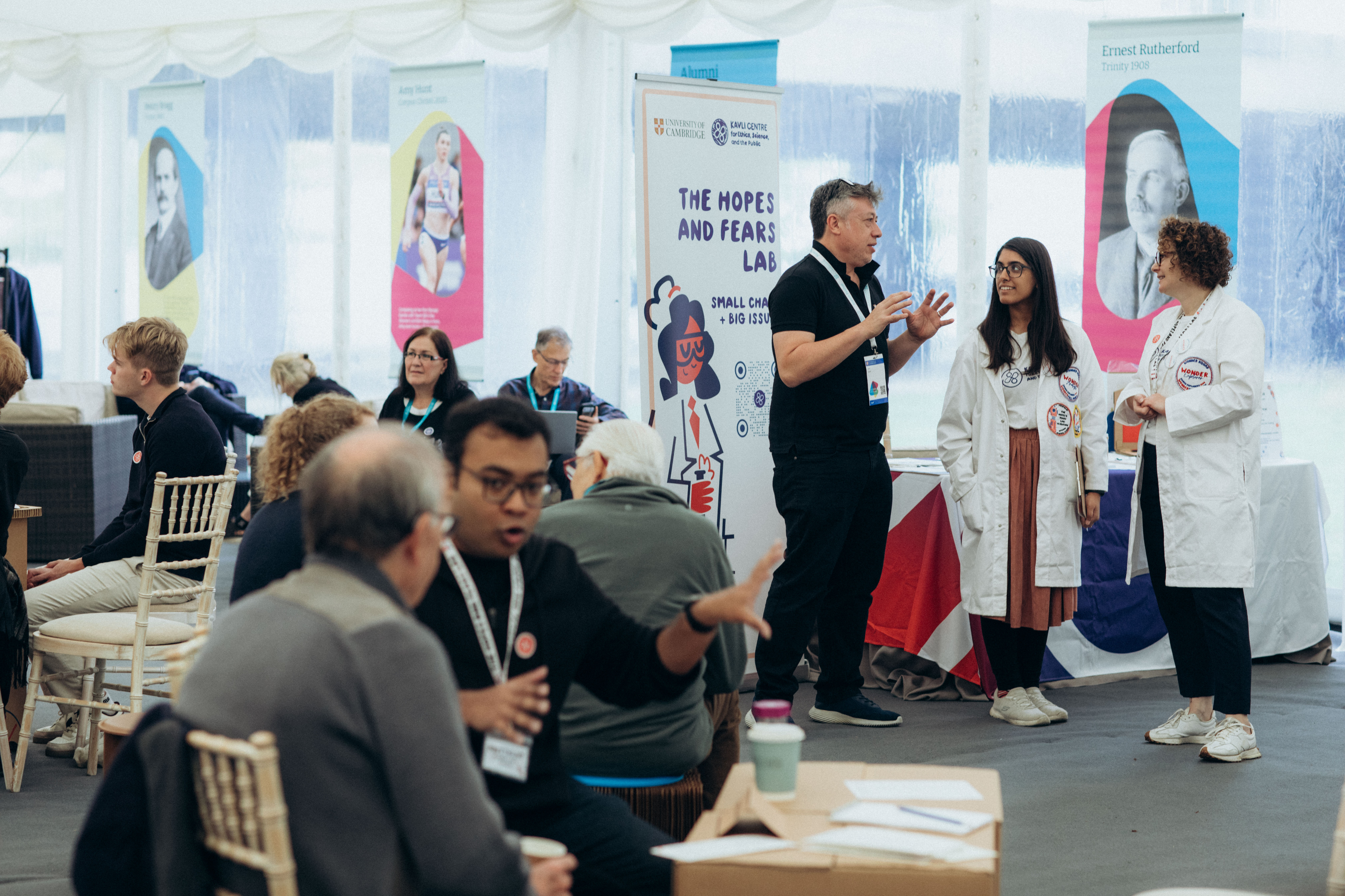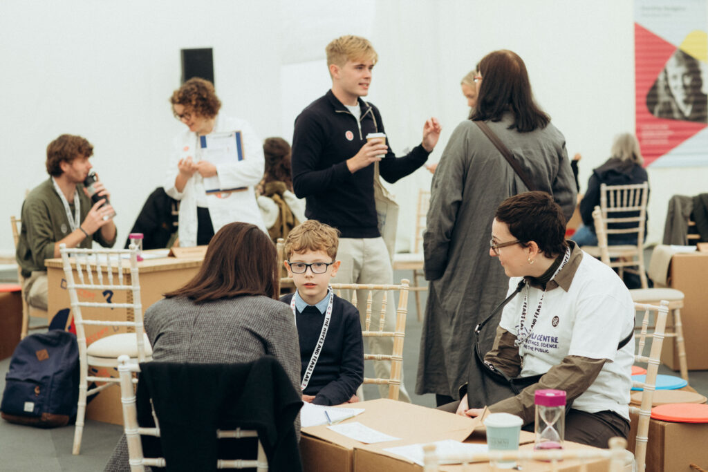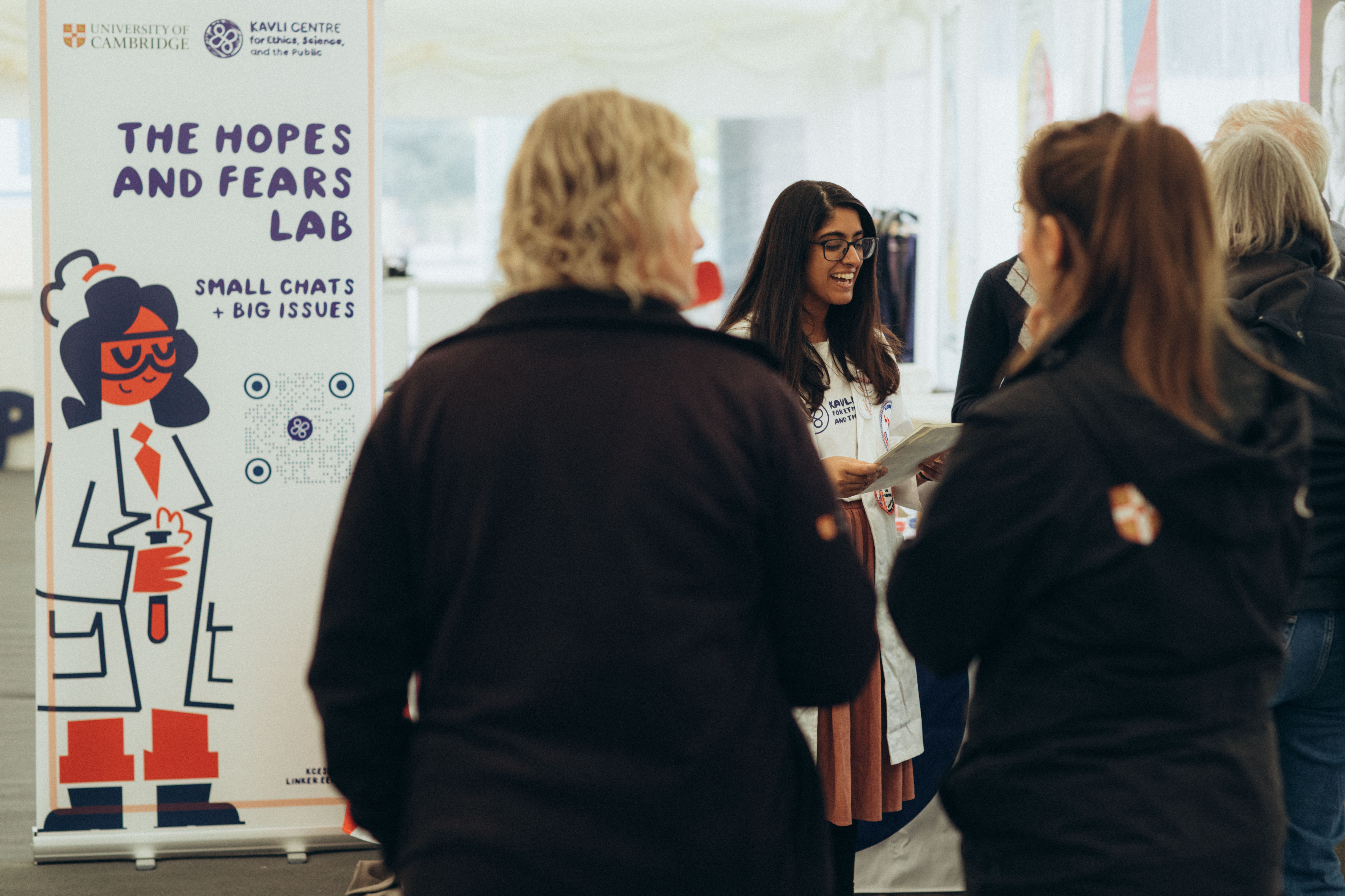 It seems incredible to us that the very first Hopes and Fears Lab took place at the Cambridge University Alumni Festival in September 2022. The Lab invites publics and researchers to connect over something we’re all experts in — how we feel about the future of science and technology. It all takes place in a cardboard lab designed by our artist Tom McLean. More information about the project here.